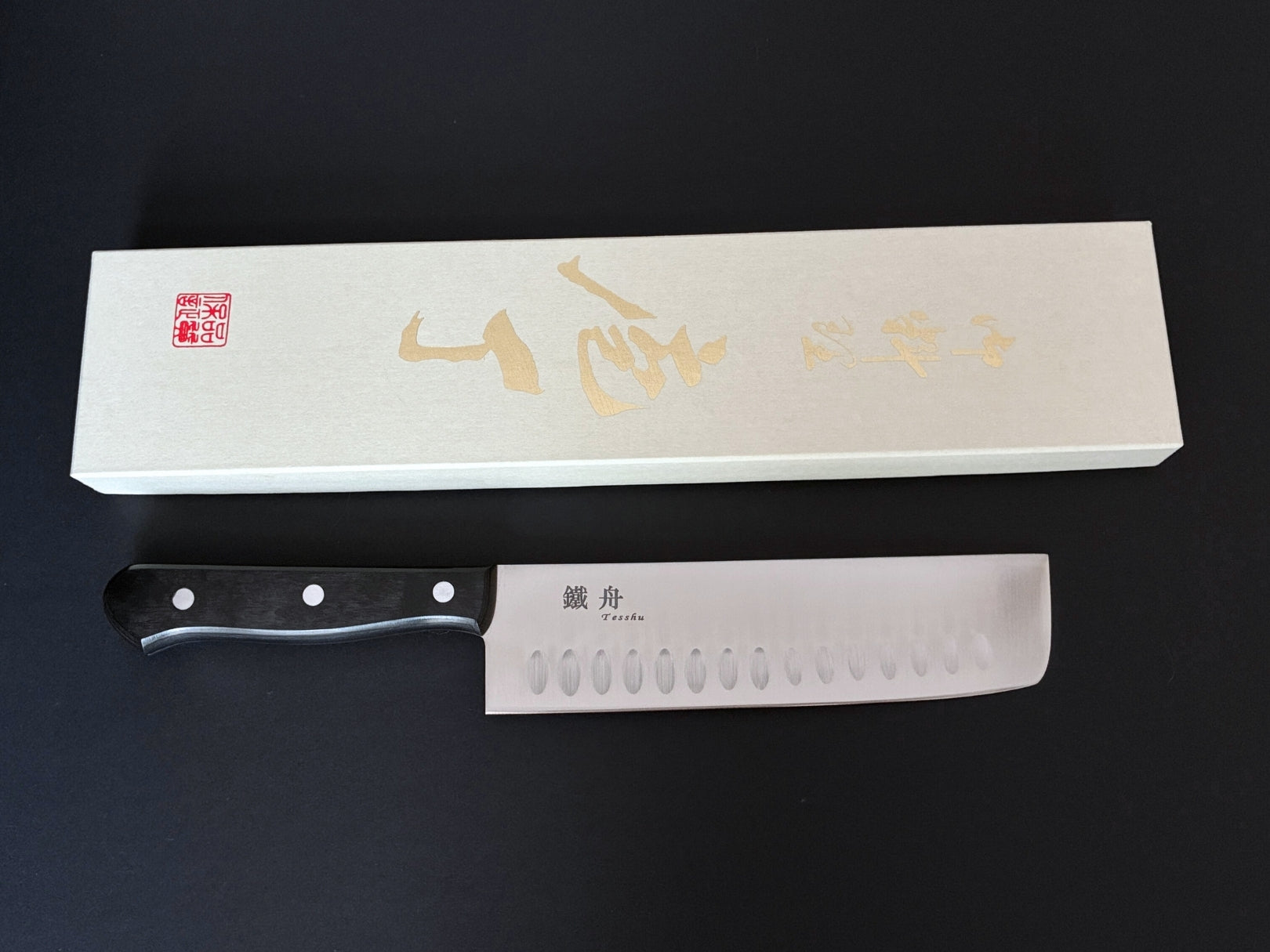TESSHU Nakiri 7"(170mm) stainless Steel blade Japanese Knife with Dimples