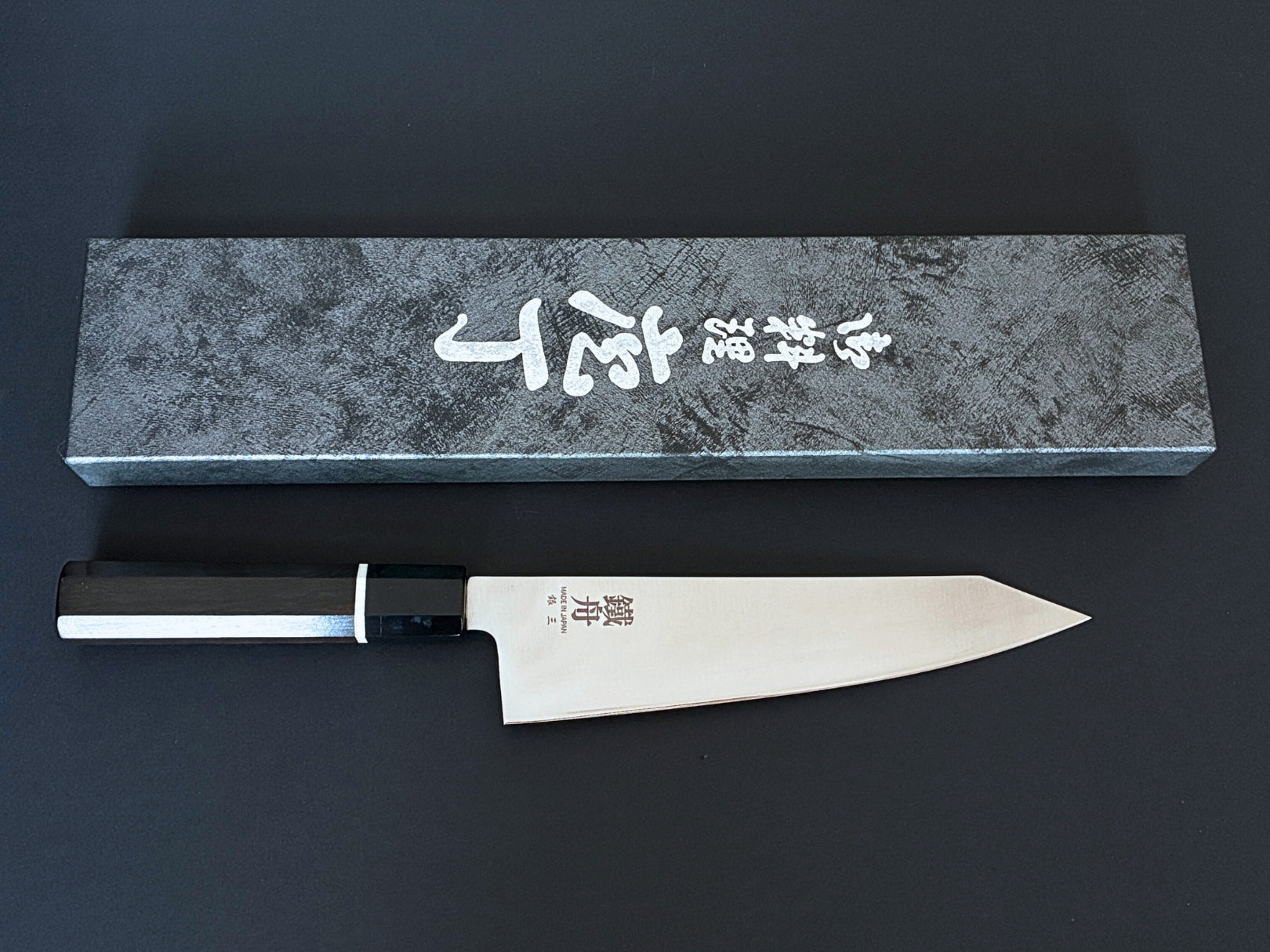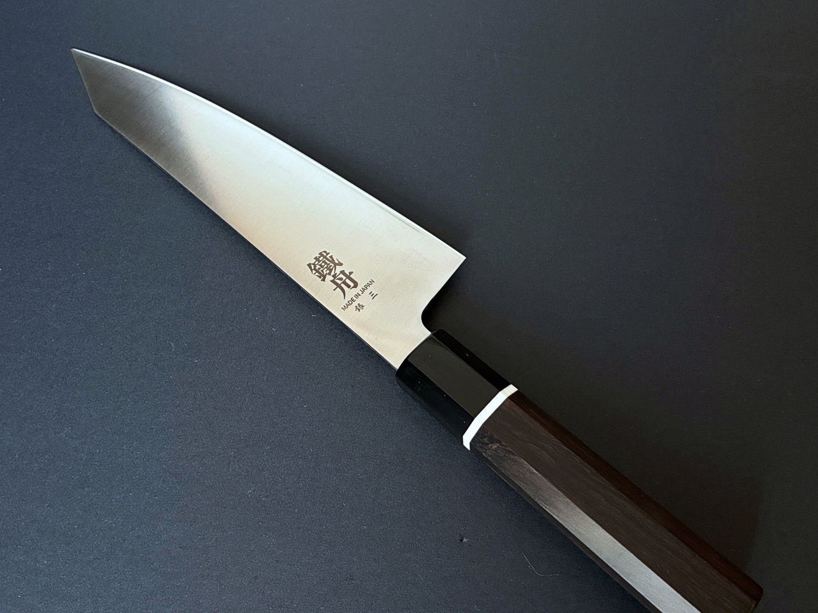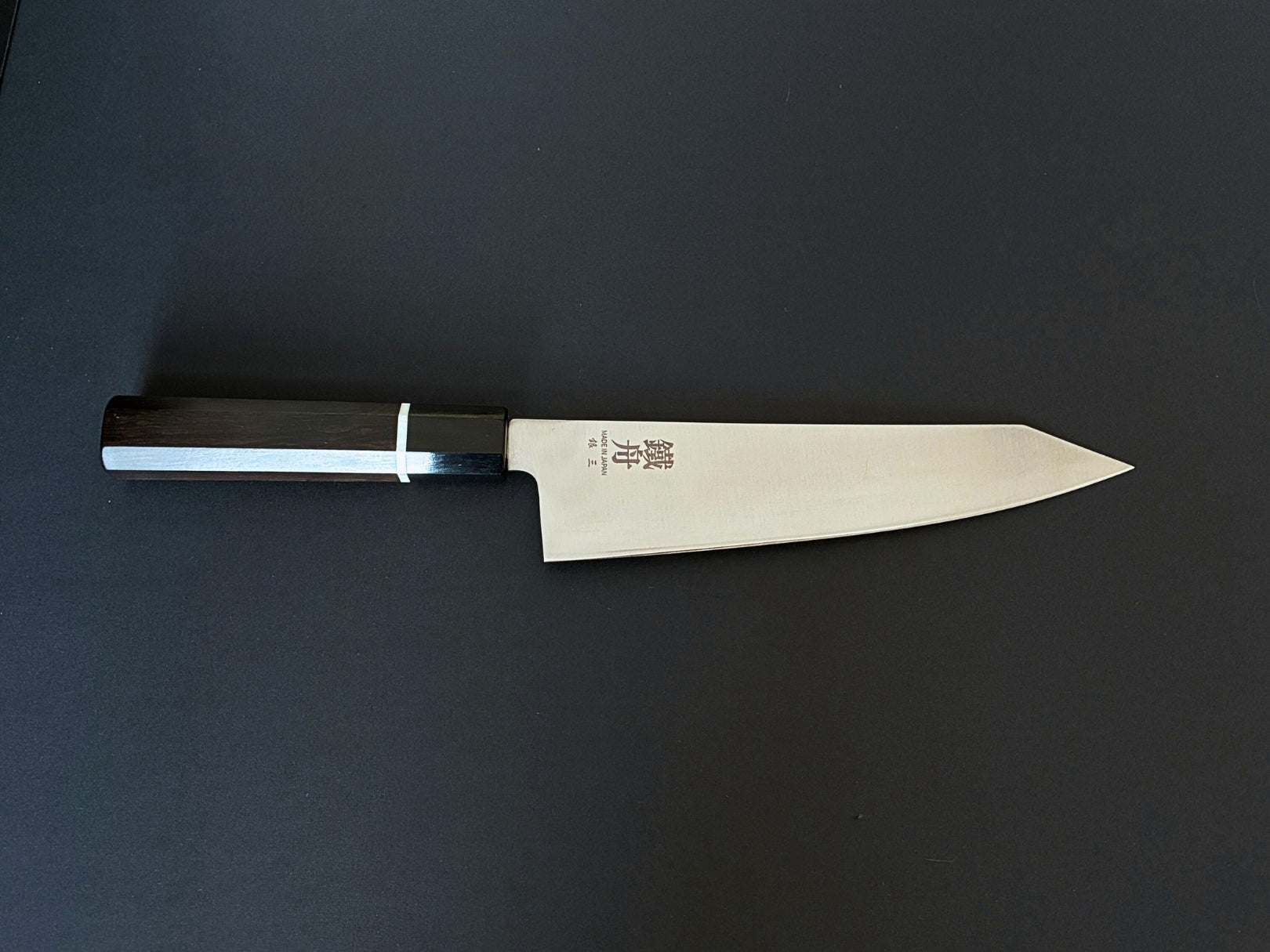 TESSHU Kiritsuke Wa Gyuto 8-1/4" (210mm) Ginsan Stainless steel Blade with Octagonal shaped Water Buffalo and Ebony White line Handle Japanese Chef's Knife