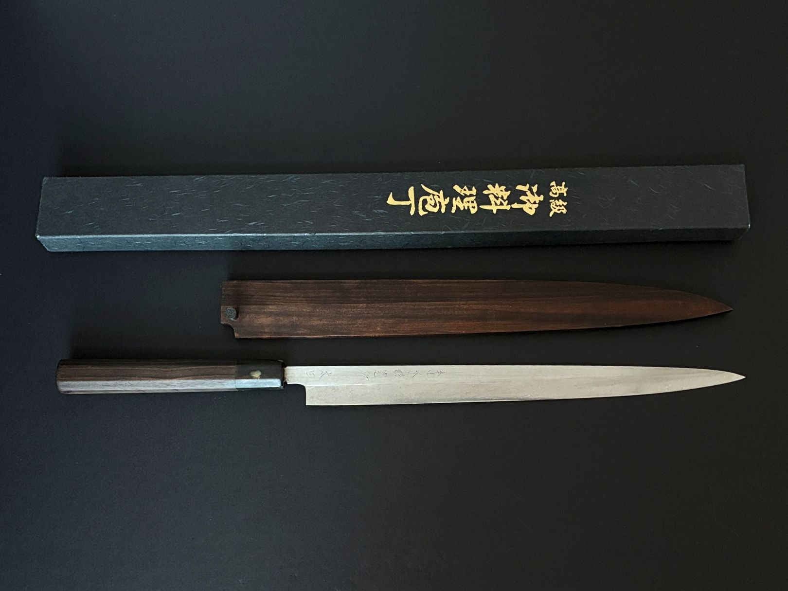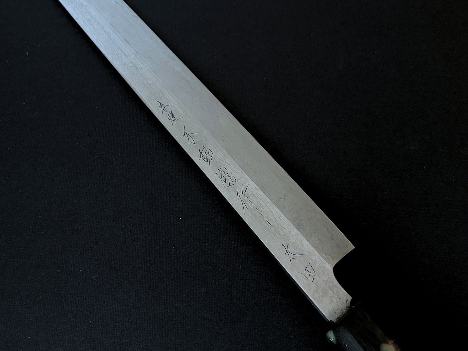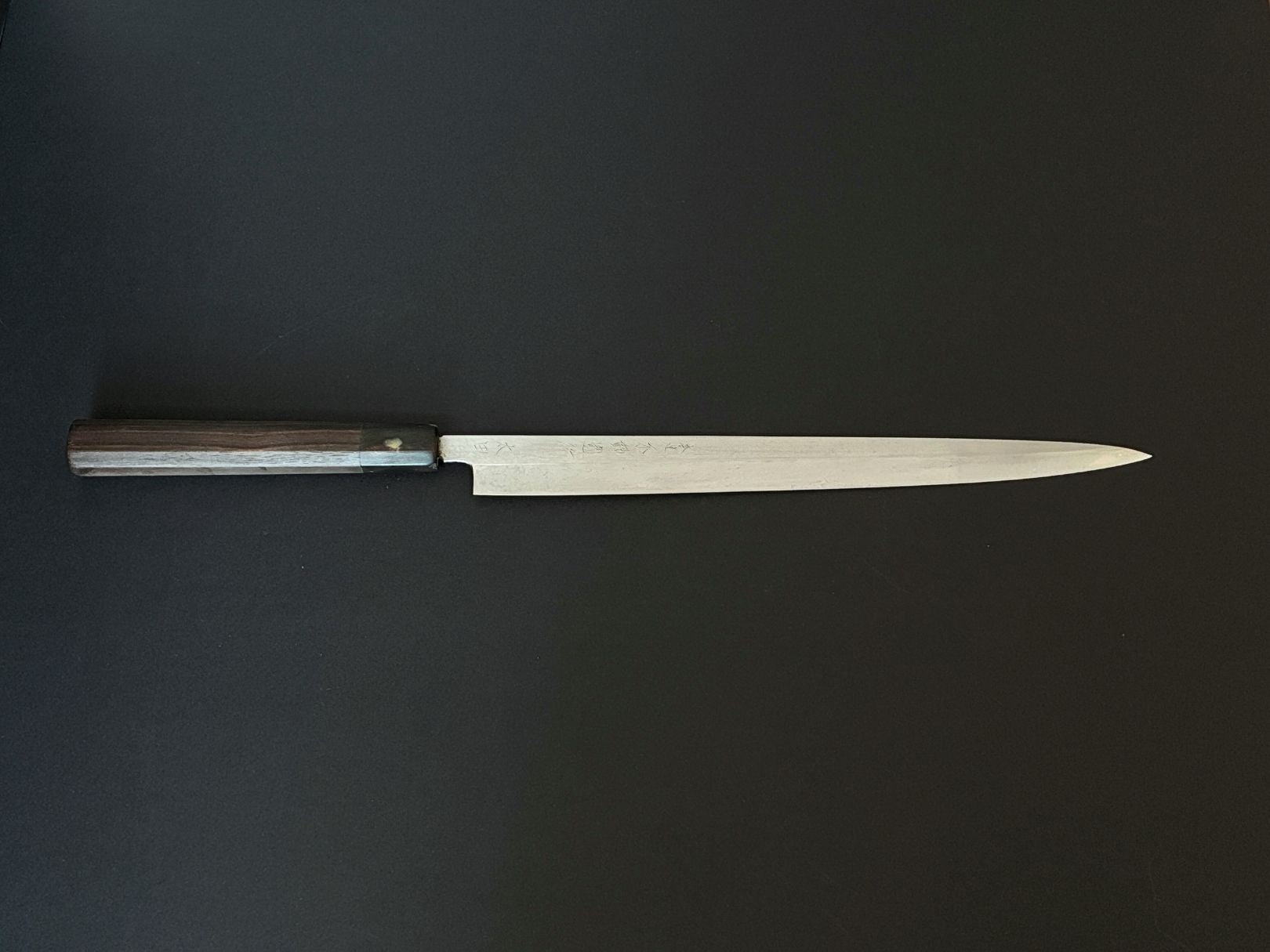 This knife is a Fuguhiki, which means it is thinner and lighter than a Yanagiba.