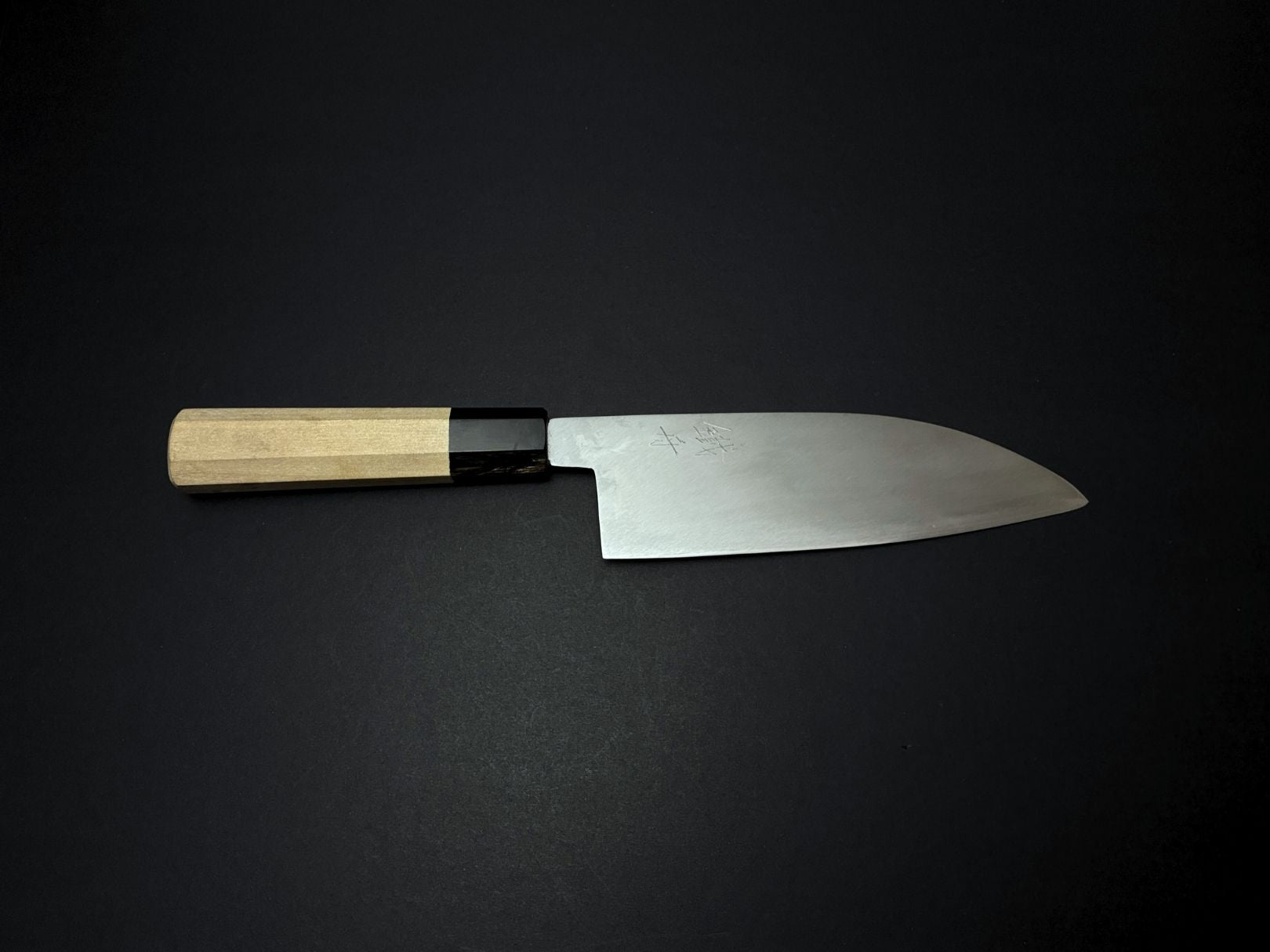TESSHU Japanese Santoku Knife 6-3/4" (170mm) - AUS-10 Stainless Steel, Clad Blade, Ho Wood Handle