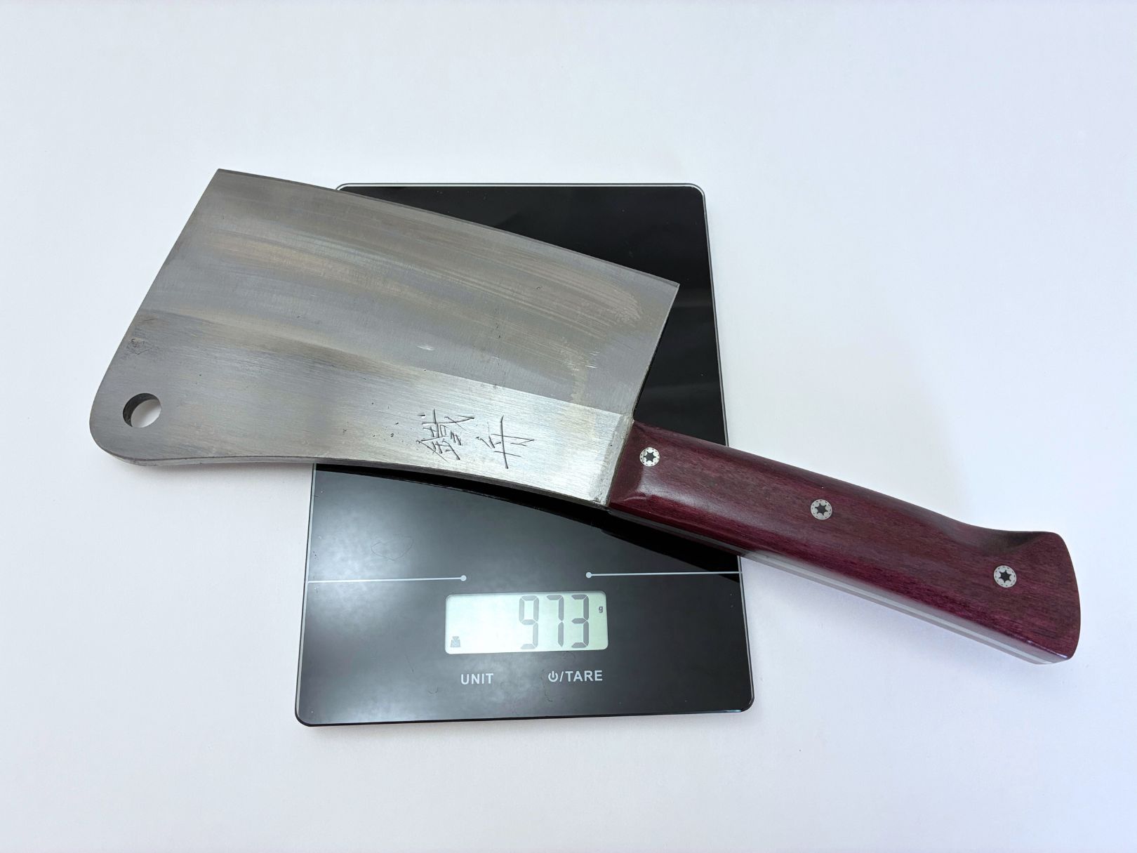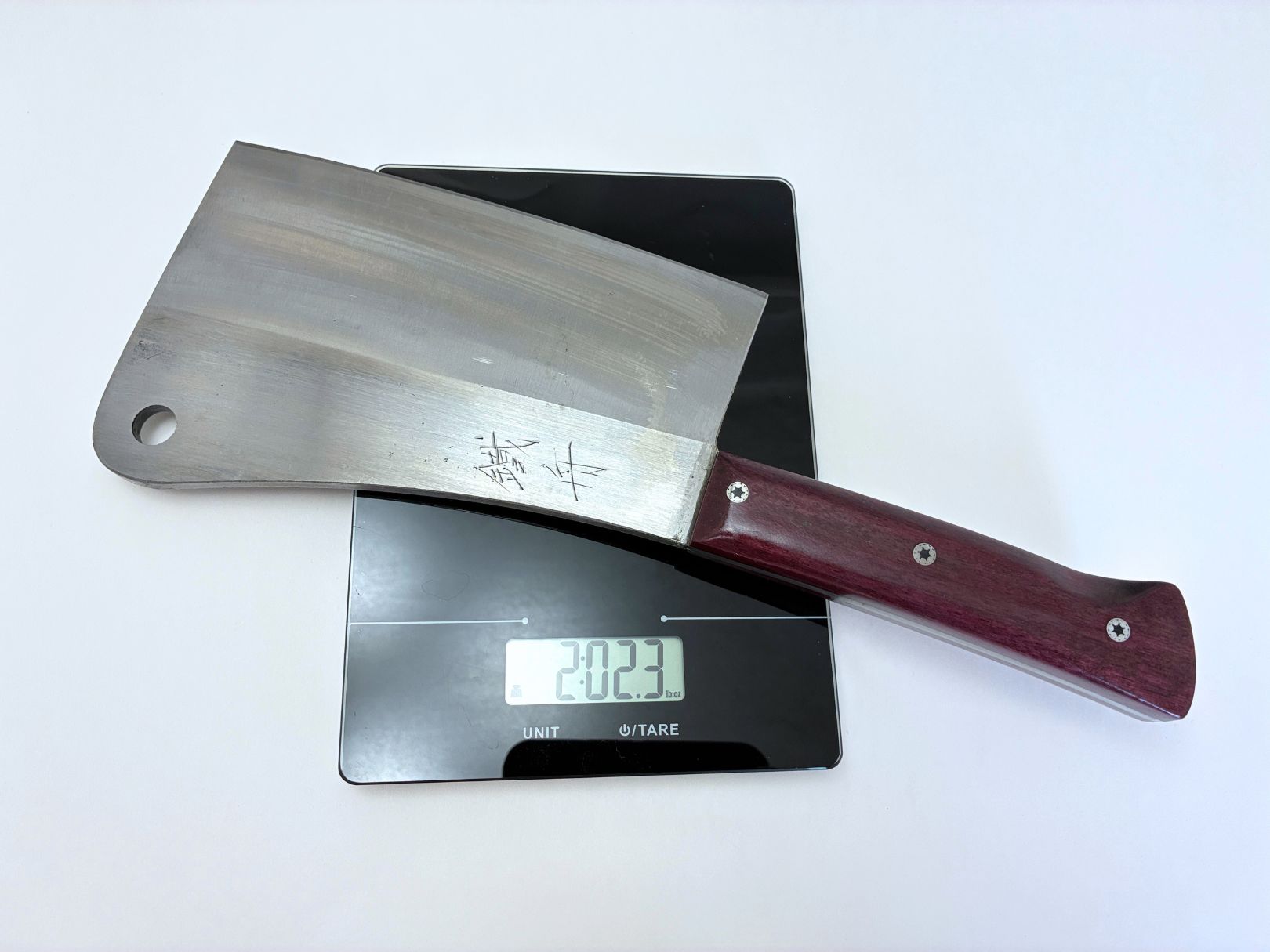 It is heavy and thick enough to cut bones, fish head, and frozen foods.