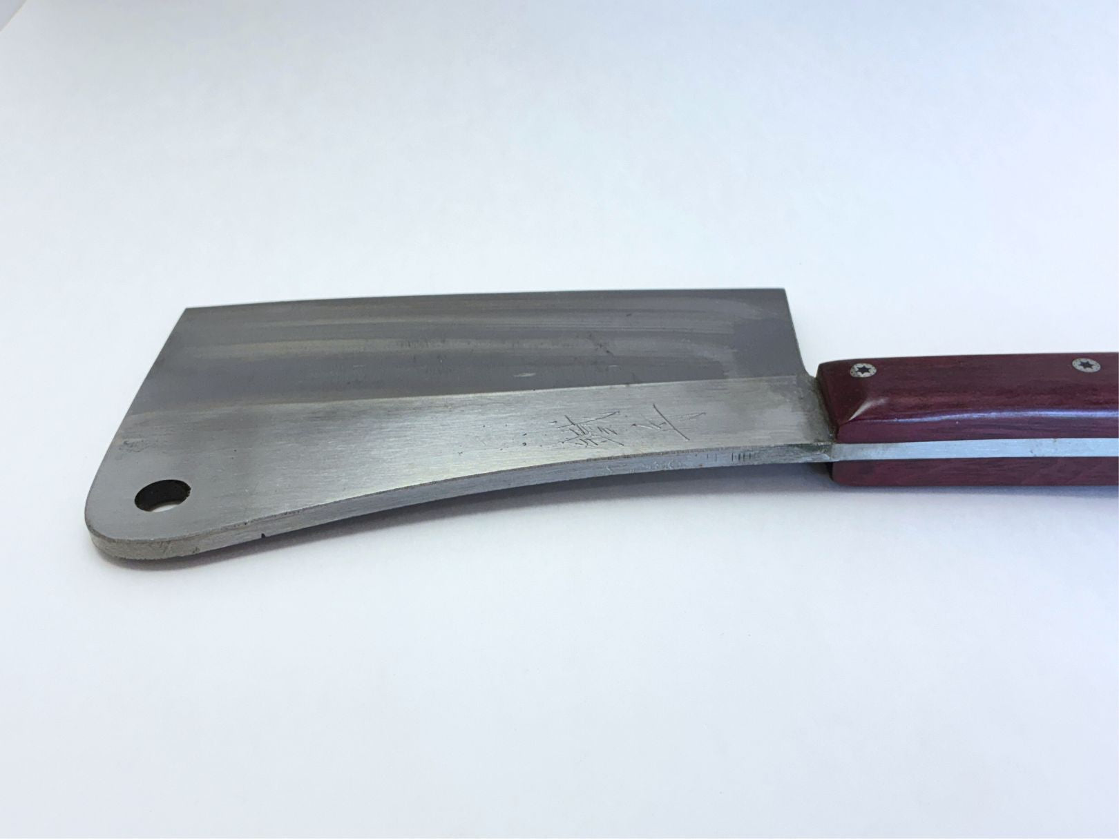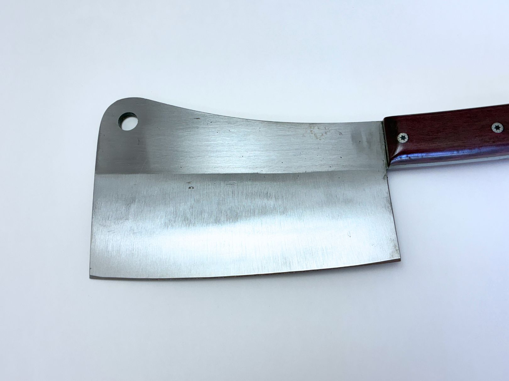 It has pure carbon steel (SK-5), so easy to sharpen (stainless steel cleaver is harder to sharpen), but it is going to stain or rust, if we leave the blade wet condition after used it.