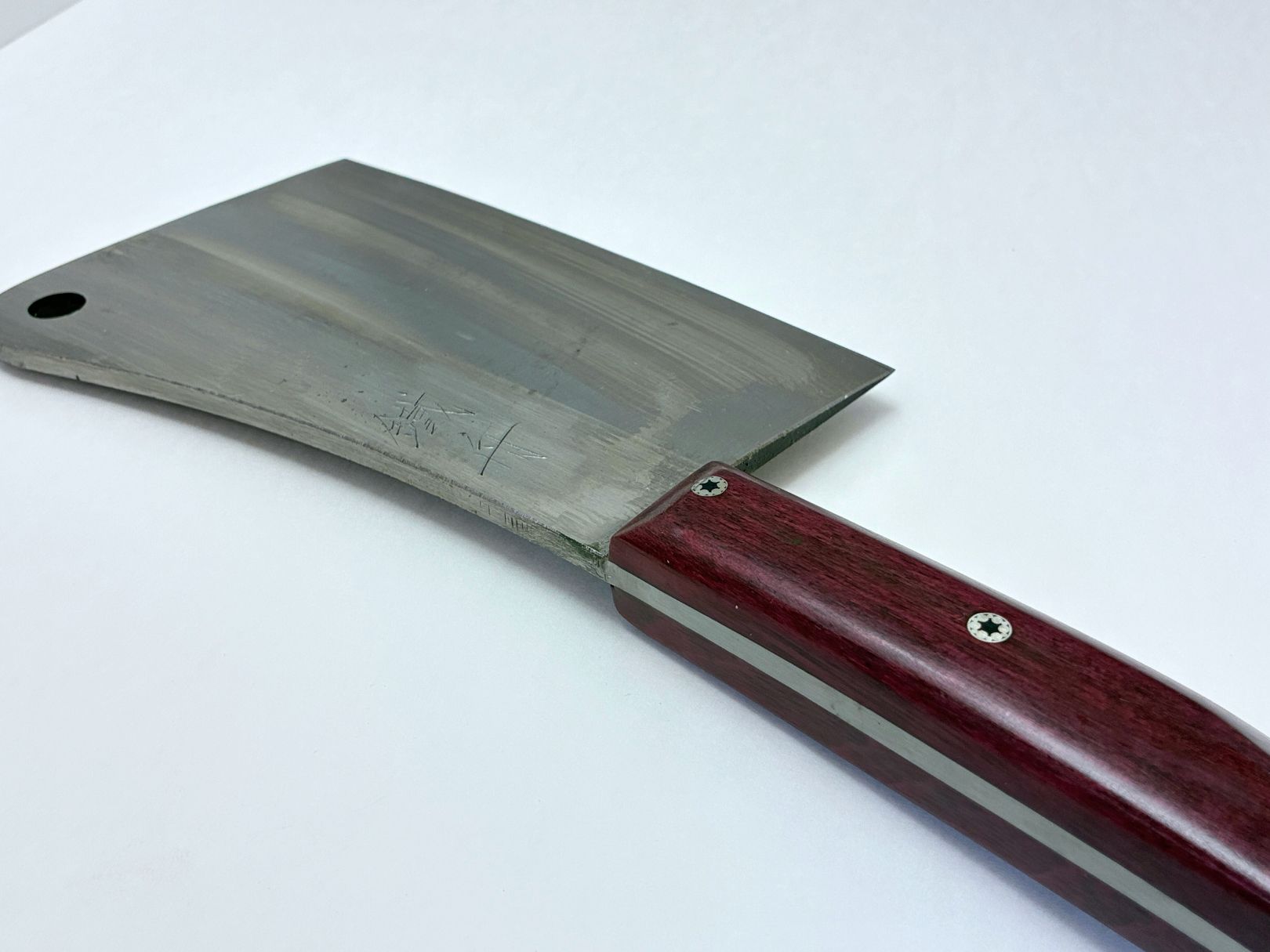 TESSHU Meat Cleaver 185mm High Carbon Steel Blade with Custom Purple Heart Handle