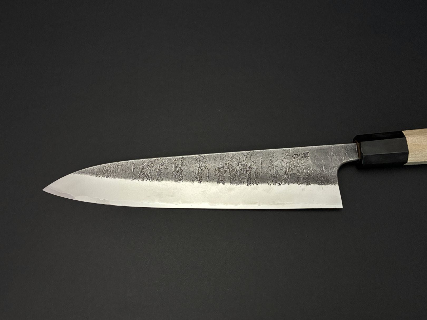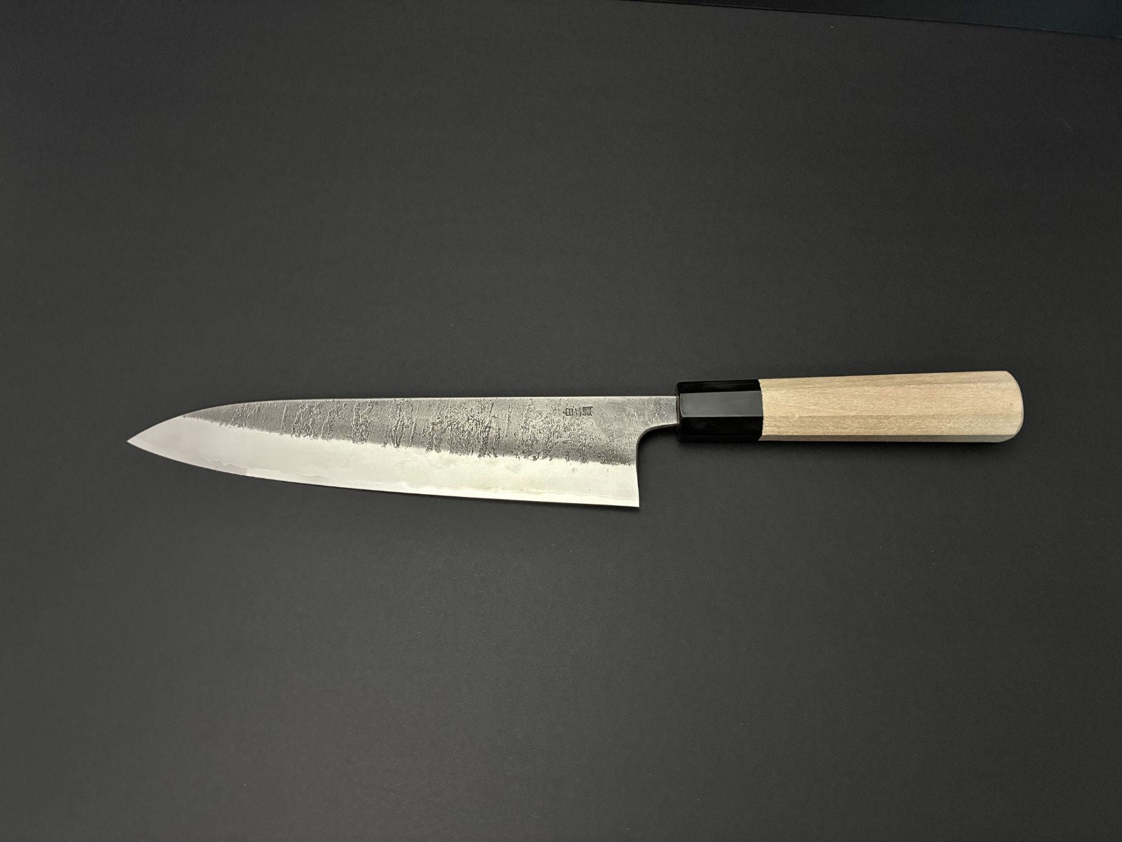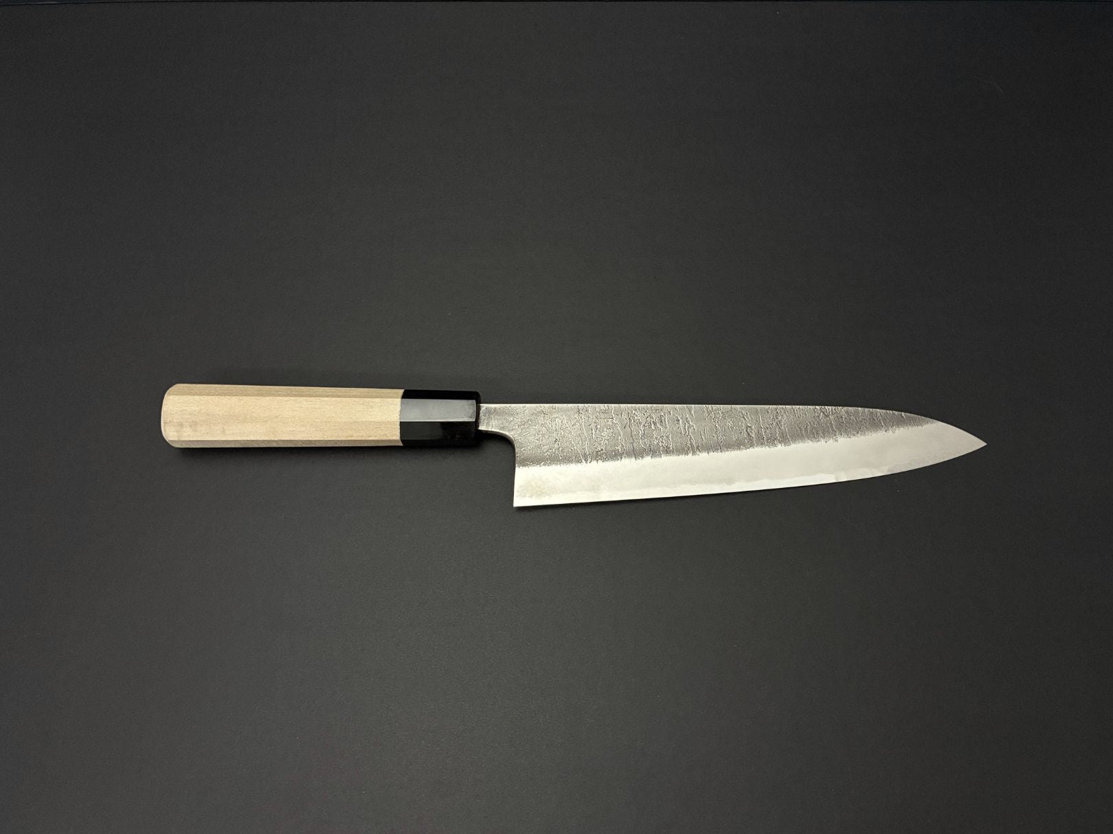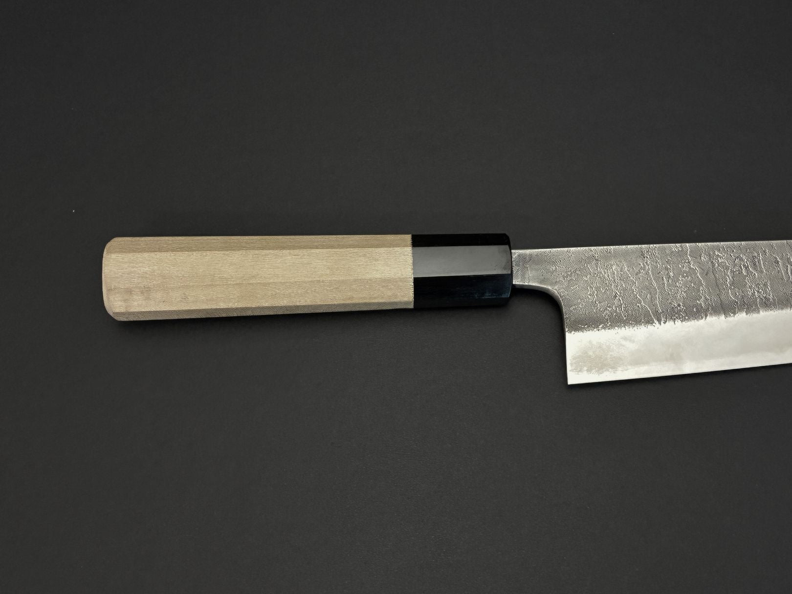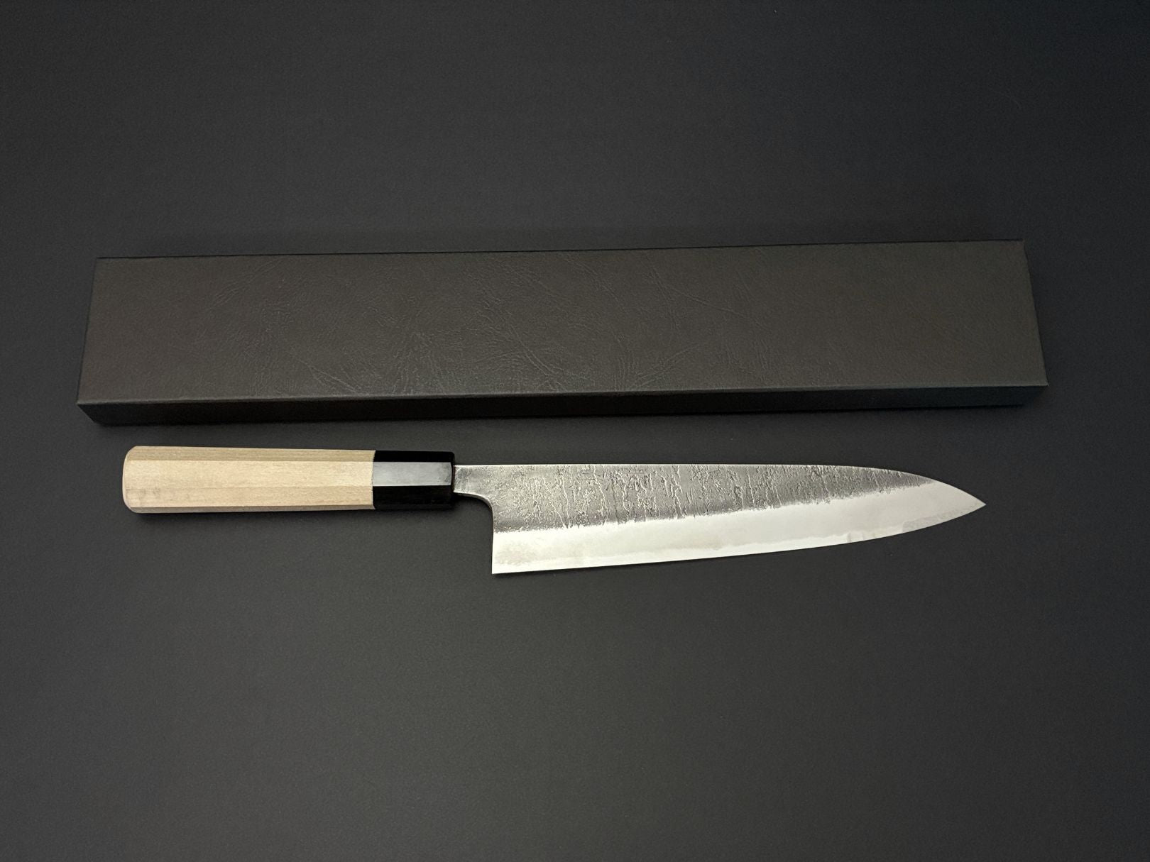 Wakui Wa Gyuto 210mm White II Steel / SUS410 Nashiji Sanmai-Uchi blade Japanese Chef Knife with Octagonal Shaped Ho handle forged by Mr. Toshihiro Wakui