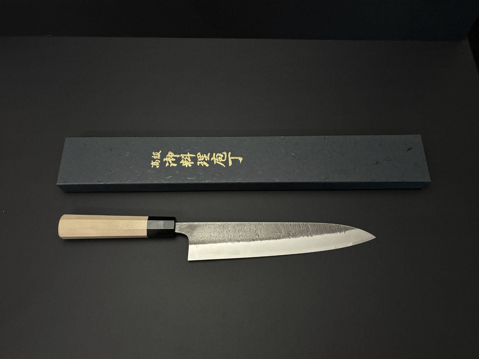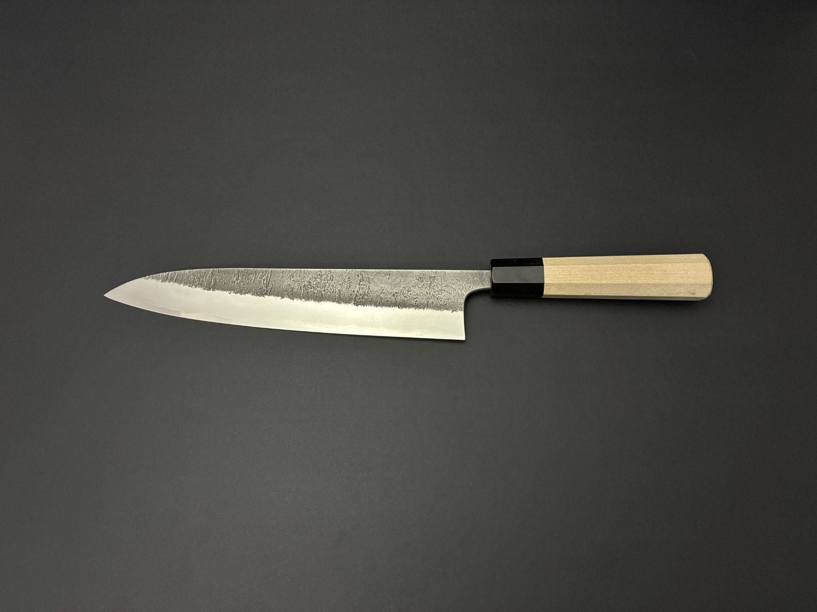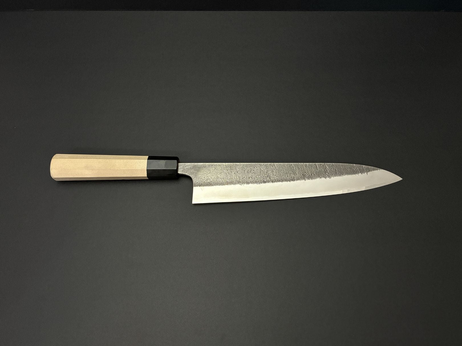 Wakui Wa Gyuto 240mm White II Steel / SUS410 Nashiji Sanmai-Uchi blade Japanese Chef Knife With Octagonal Shaped Ho handle forged by Mr. Toshihiro Wakui